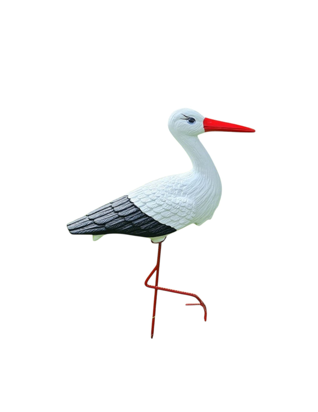 Ręcznie malowany bocian. Idealny jako ozdoba do Twojego ogrodu. Ożywi i uświetni wygląd przed domem.